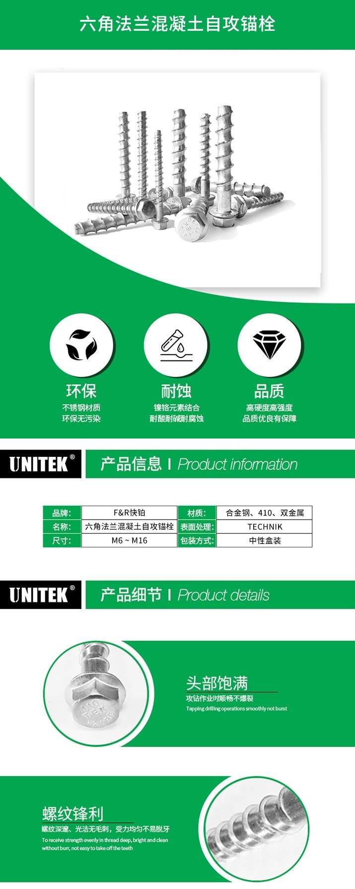 六角徑向外螺紋懸掛混凝土自攻錨栓